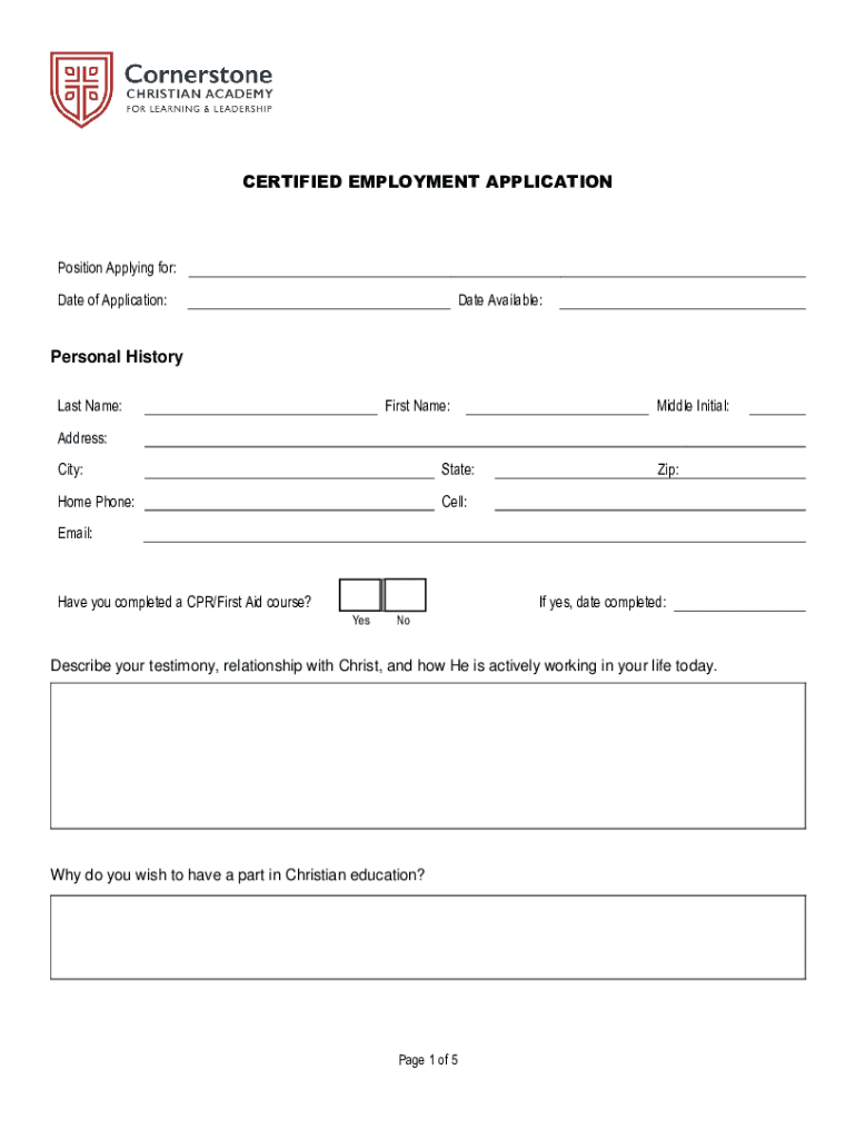 CERTIFIED EMPLOYMENT APPLICATIONPosition Applying for:
