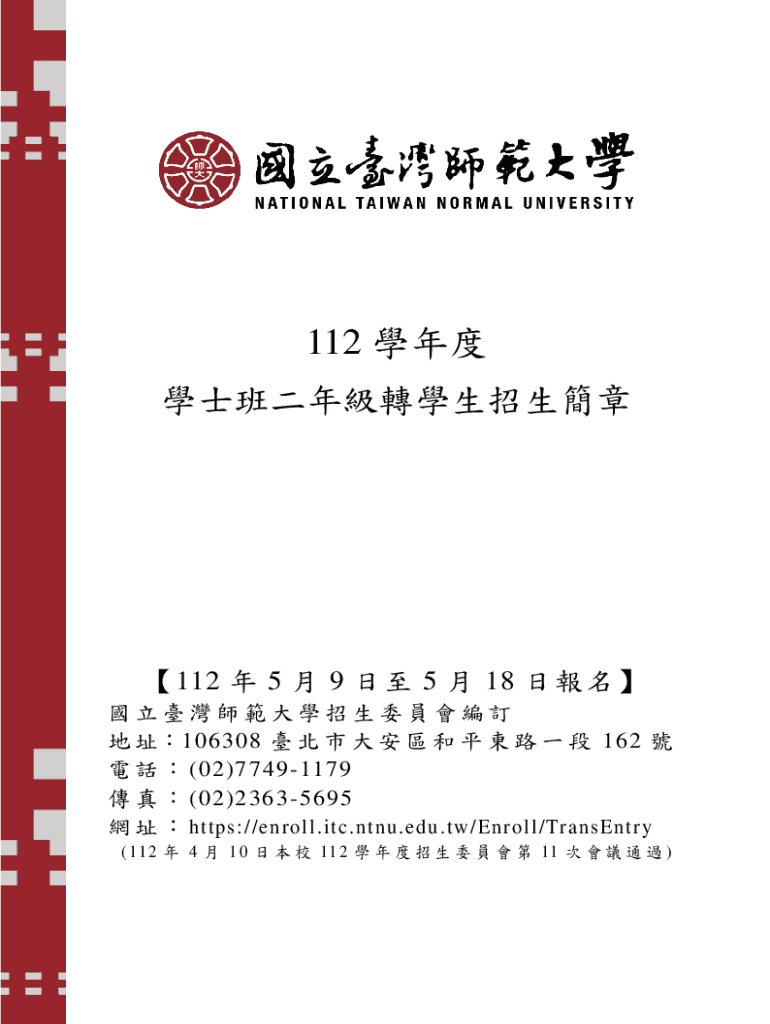 112 112 5 9 5 18 106308 162 (02)77491179 (02)23635695 https://enroll.itc.ntnu.edu.tw/Enroll/TransEntry (11 2 4 1 0 11 2 11) 112509