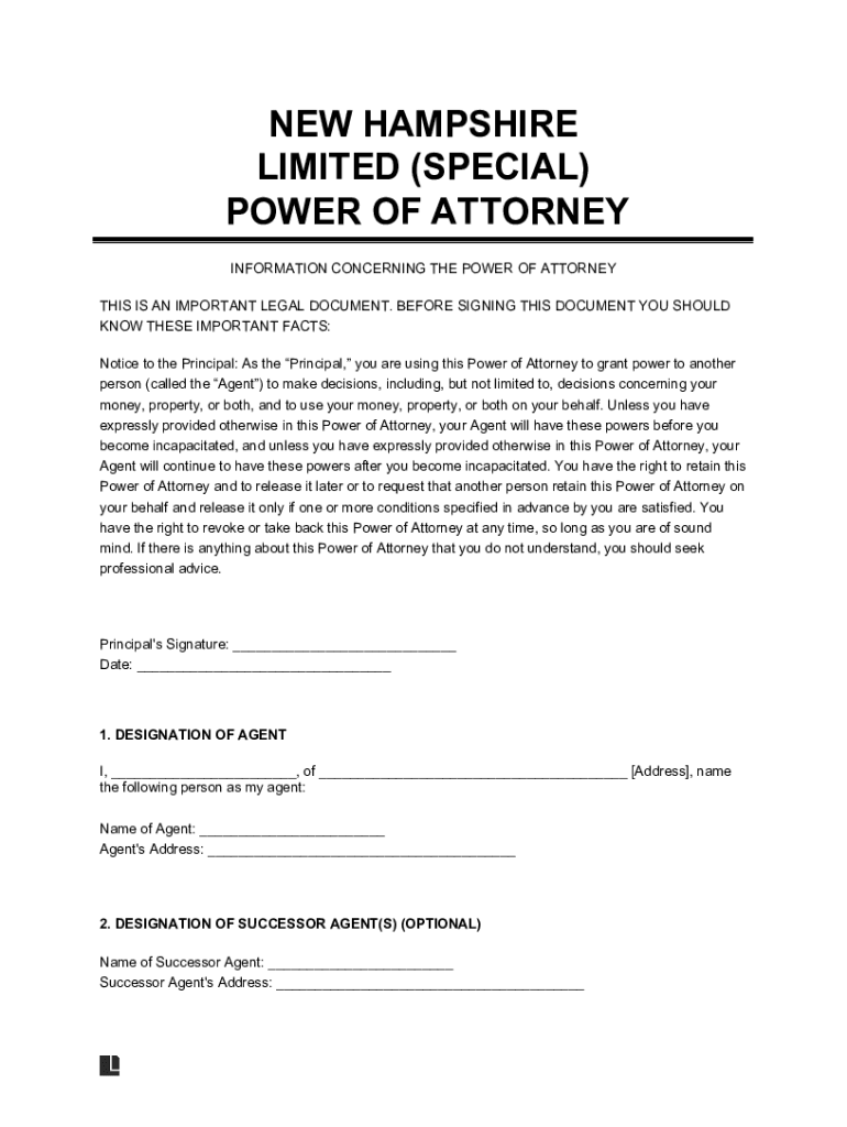 People who want to appoint someone to act on their behalf for a limited or specific purpose in the state of New Hampshire.