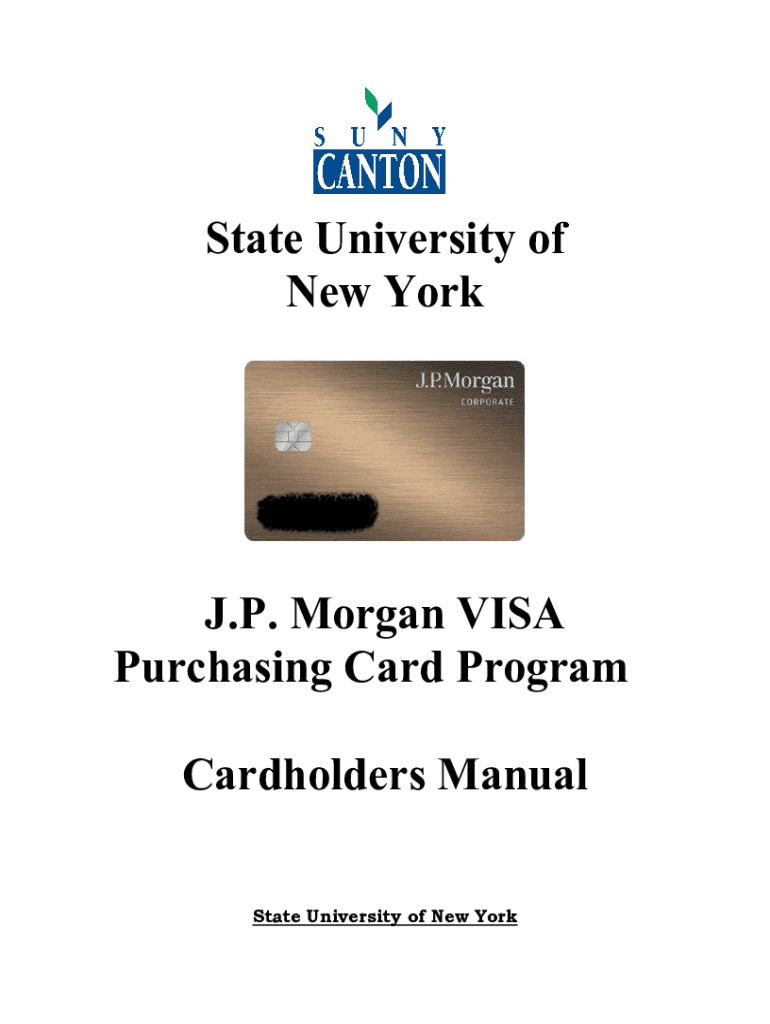 CANTON State University of New York. P. Morgan VISA Purchasing Card Program Cardholders Manual State University of New Corkboard Contact InformationProgram Administrator Beth Martin SUN Canton 3153867555