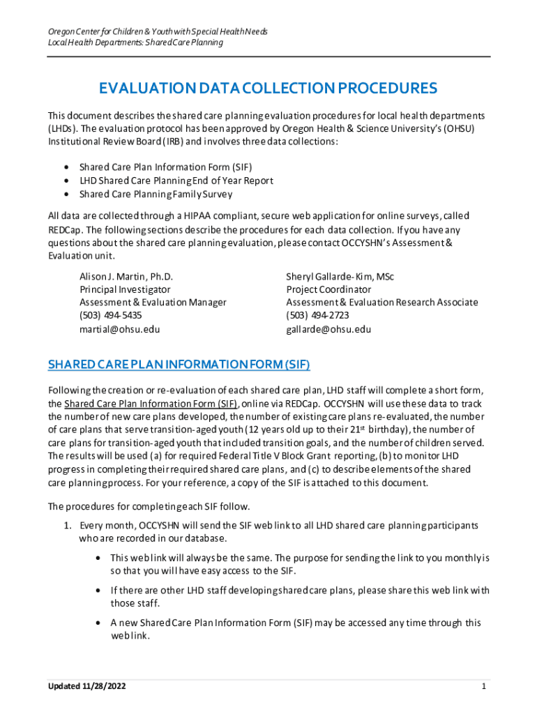 Oregon Center for Children & Youth with Special Health Needs Local Health Departments: Shared Care PlanningEVALUATION DATA COLLECTION PROCEDURES This document describes the shared care planning evaluation