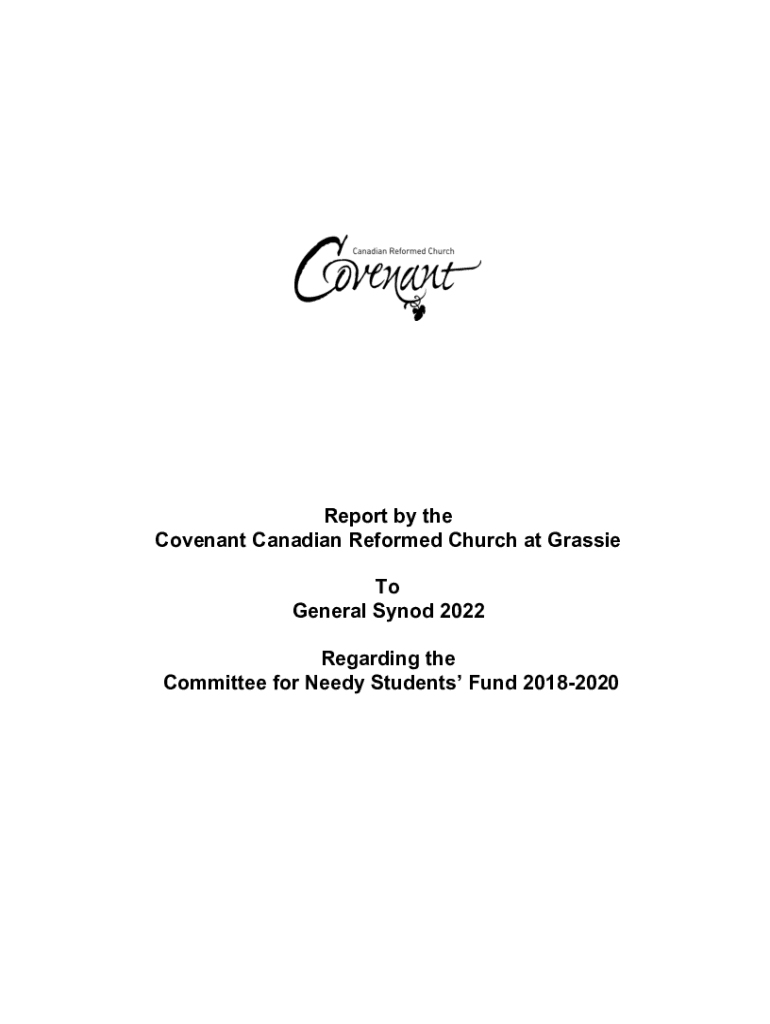 Report by the Covenant Canadian Reformed Church at Grassier To General Synod 2022 Regarding the Committee for Needy Students Fund 201820202ContentsSection 1 Executive Summary 36Section 2 CNS Mandate