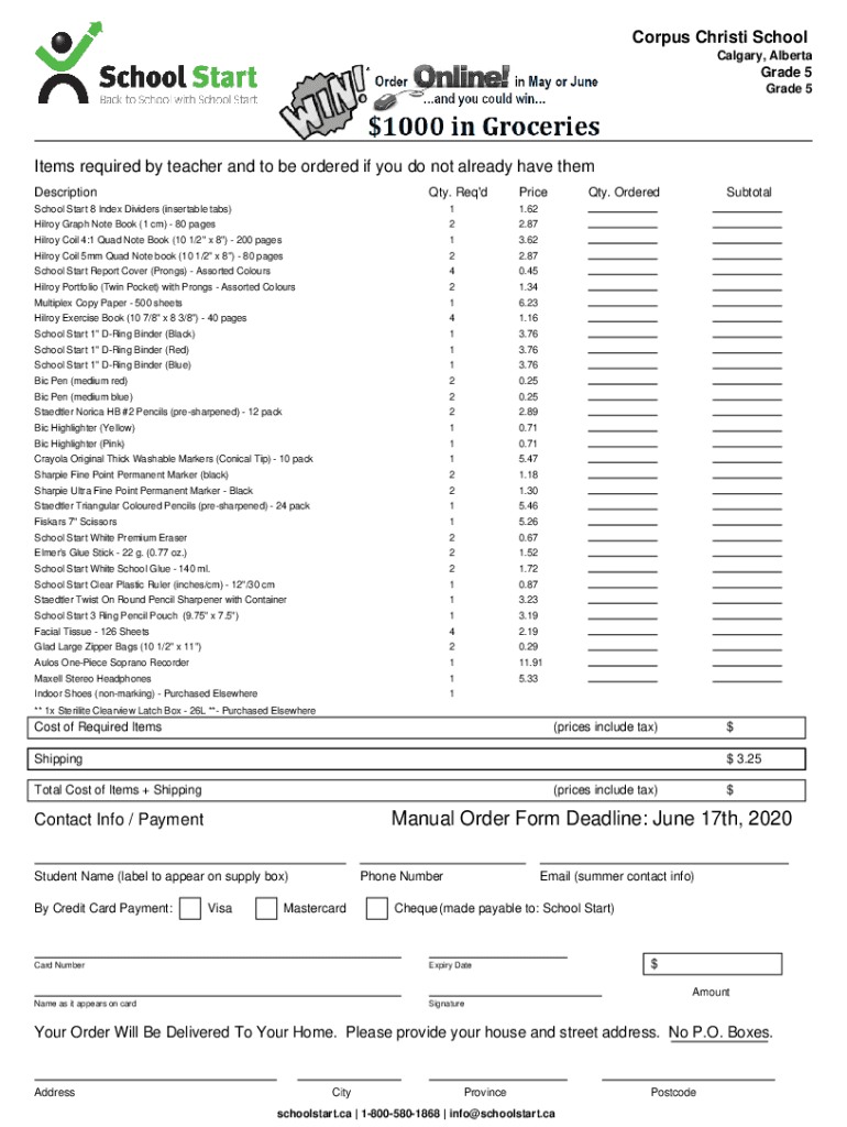 Corpus Christi School Calgary, AlbertaGrade 5 Grade 5Items required by teacher and to be ordered if you do not already have them Description. Req\'preschool Start 8 Index Dividers (insertable tabs)11.62Hilroy