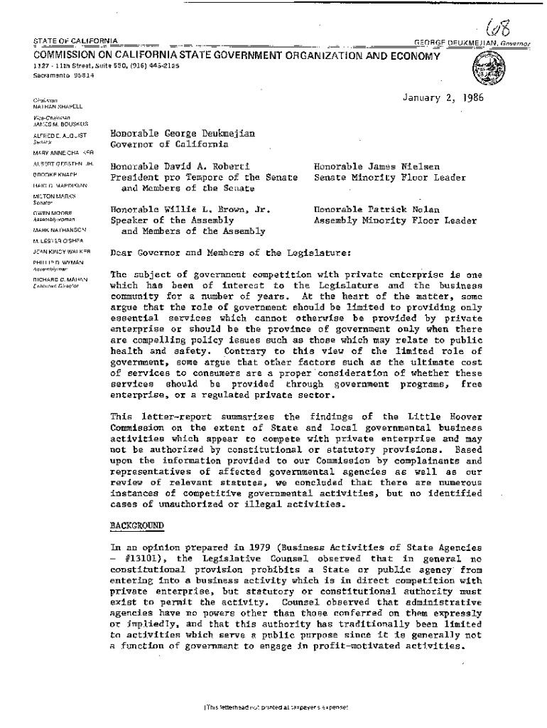 STATE OF CALIFORNIAGEORGE DEUKMEJIAN, GovernorCOMMISSION ON CALIFORNIA STATE GOVERNMENT ORGANIZATION AND ECONOMY