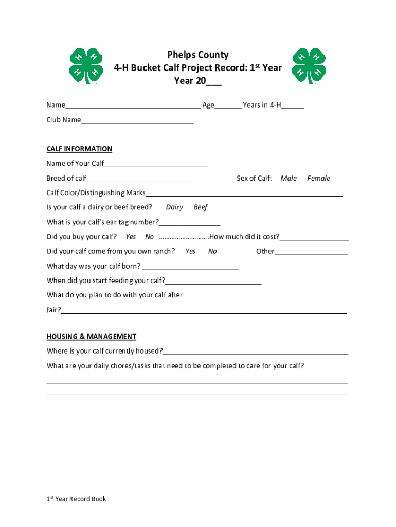 Get the free Phelps County 4-H Bucket Calf Project Record: 1st Year ... - extension unl