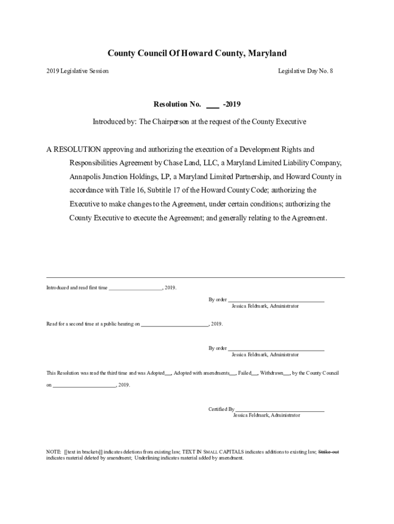 County Council Of Howard County, Maryland 2019 Legislative SessionLegislative Day No. 8Resolution No.2019Introduced by: The Chairperson at the request of the County Executive A RESOLUTION approving