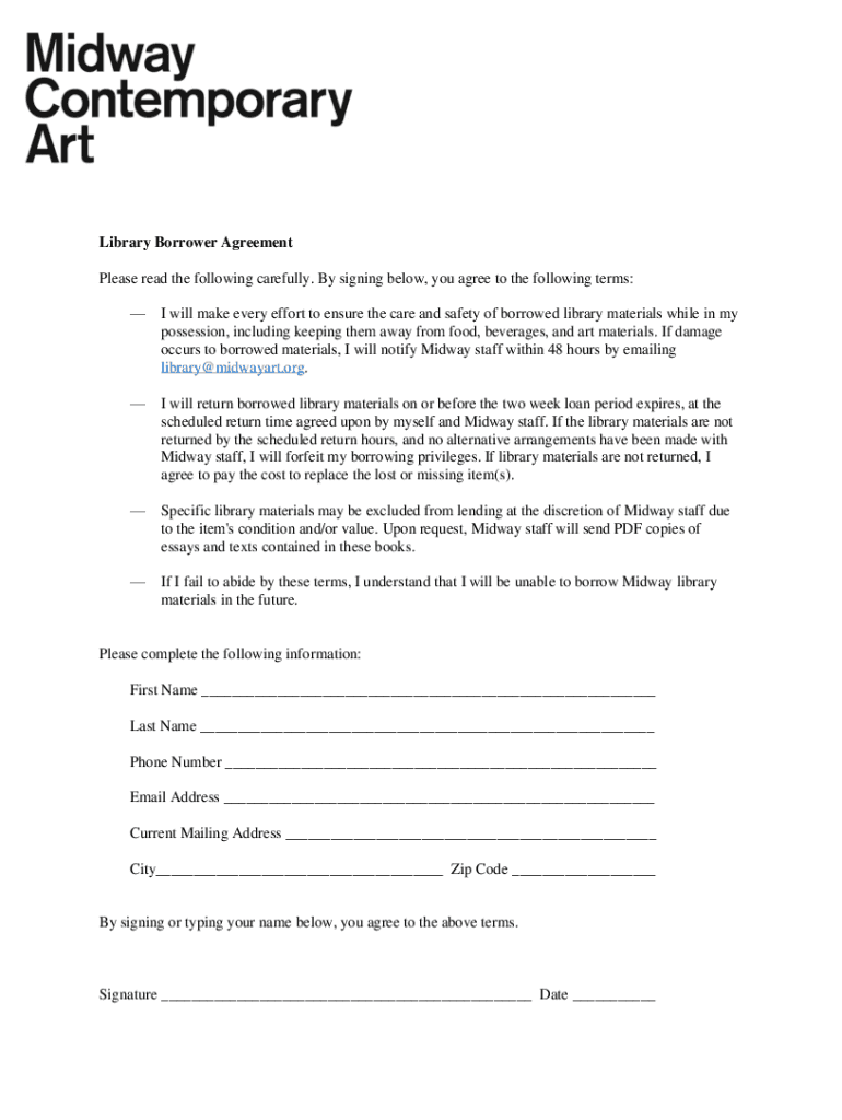 Get the free Library Borrower Agreement