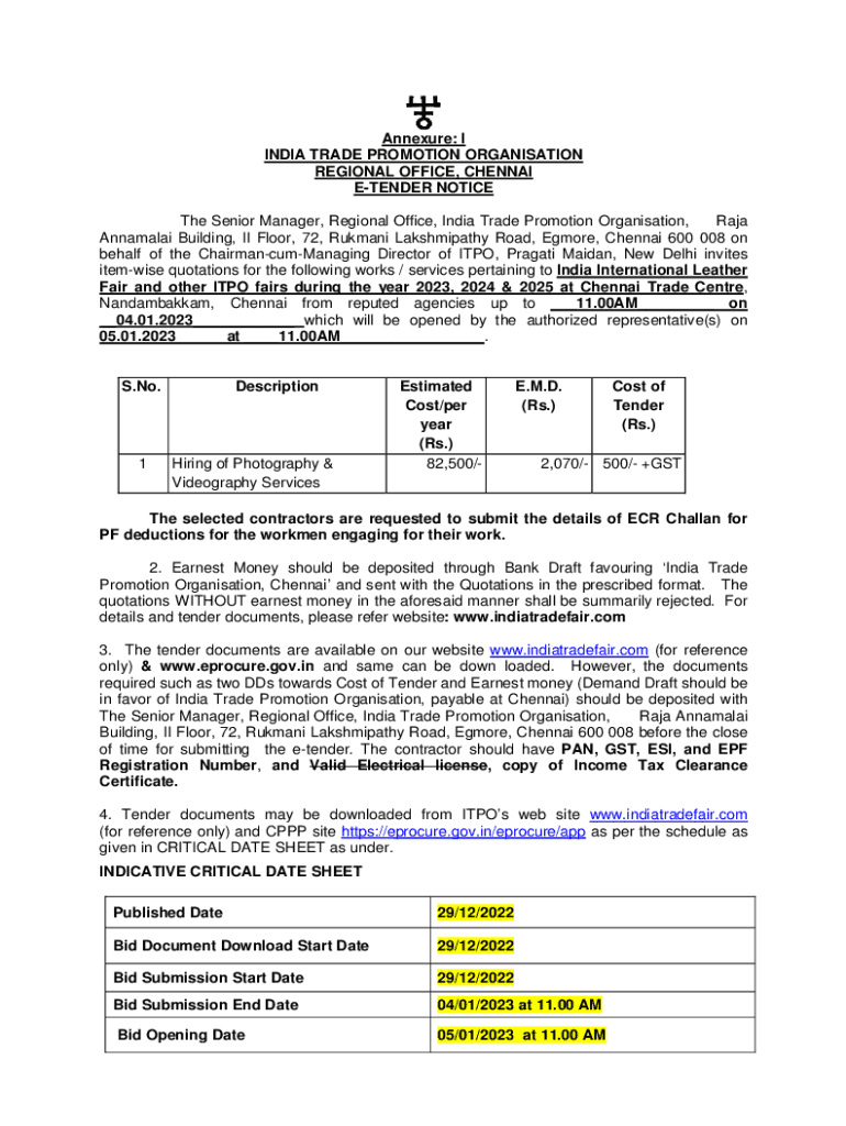 The Senior Manager, Regional Office, India Trade Promotion Organization,