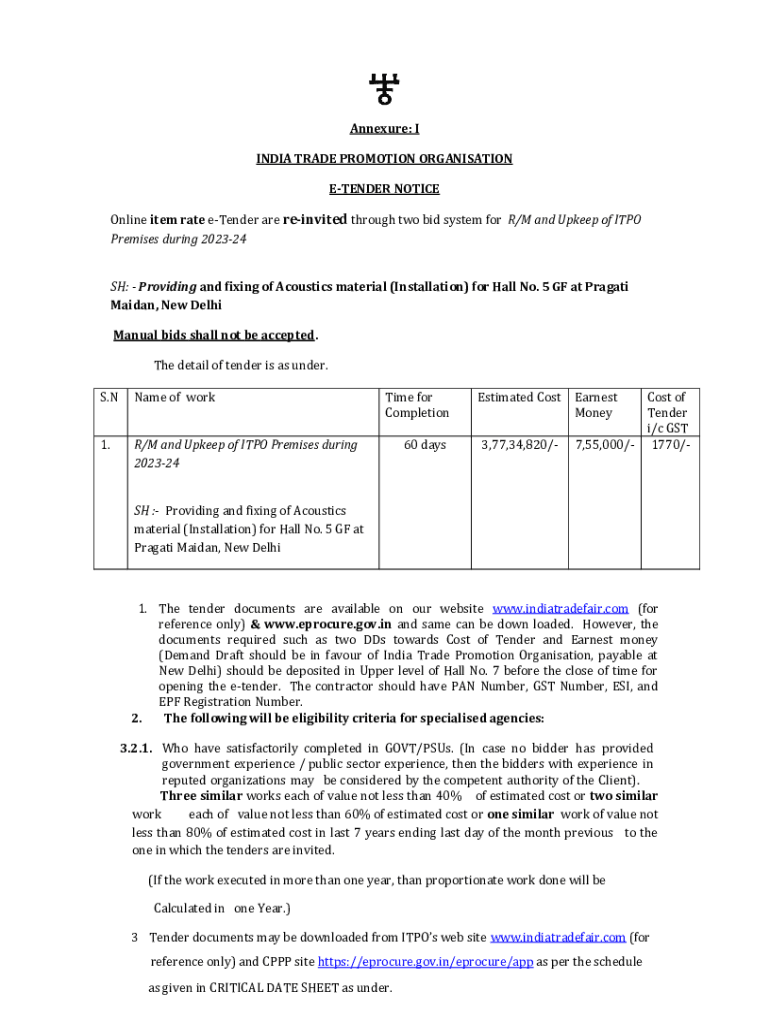 Online item rate tender are reinvited through two bid system for R/M and Upkeep of IPO