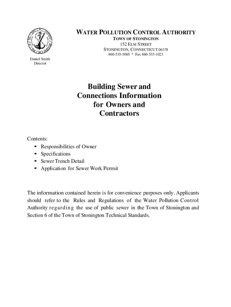WATER POLLUTION CONTROL AUTHORITY TOWN OF STANNINGTON 152 ELM STREET STANNINGTON, CONNECTICUT 06378 8605355065 * Fax 8605351023 Daniel Smith DirectorBuilding Sewer and Connections Information for