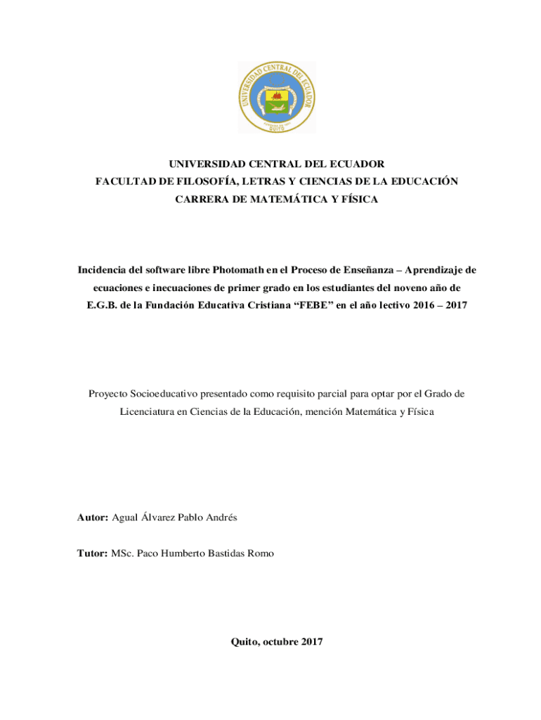 CARRERA DE MATHEMATICAL Y FSICAIncidencia Del software Libra Photomath en El Process de Enseanza Aprendizaje de