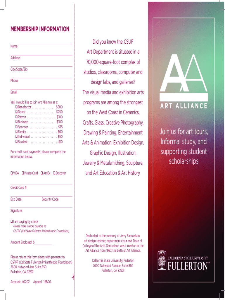 Did you know the CSUFNameArt Department is situated in aAddress70,000squarefoot complex city/State/Zip studios, classrooms, computer andPhonedesign labs, and galleries? Email