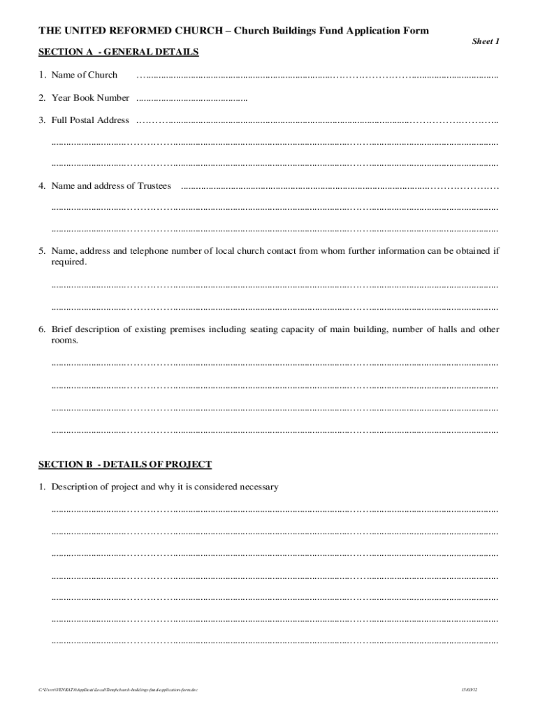 THE UNITED REFORMED CHURCH Buildings Fund Application Form Sheet 1SECTION A GENERAL DETAILS1. Name of Church..............................................................................................................2.