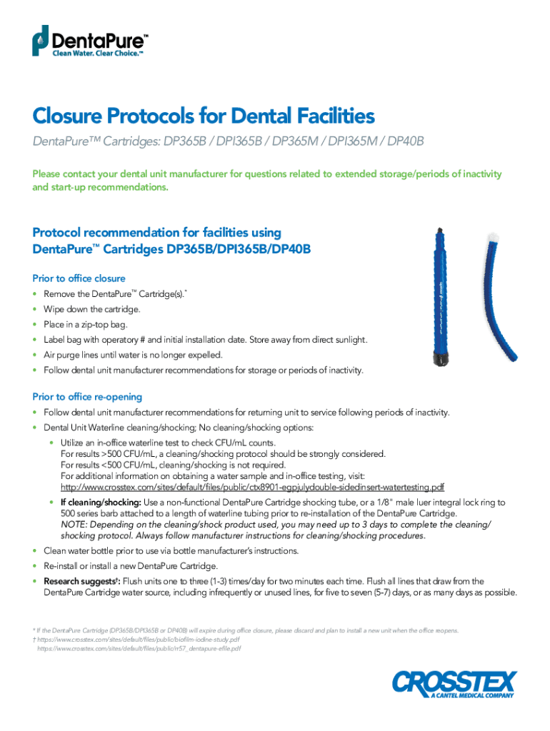 Please contact your dental unit manufacturer for questions related to extended storage/periods