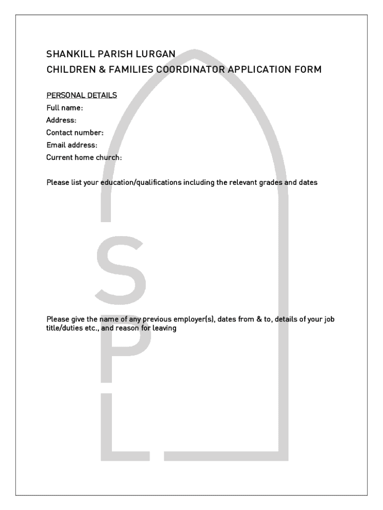 CHILDREN & FAMILIES COORDINATOR APPLICATION FORM