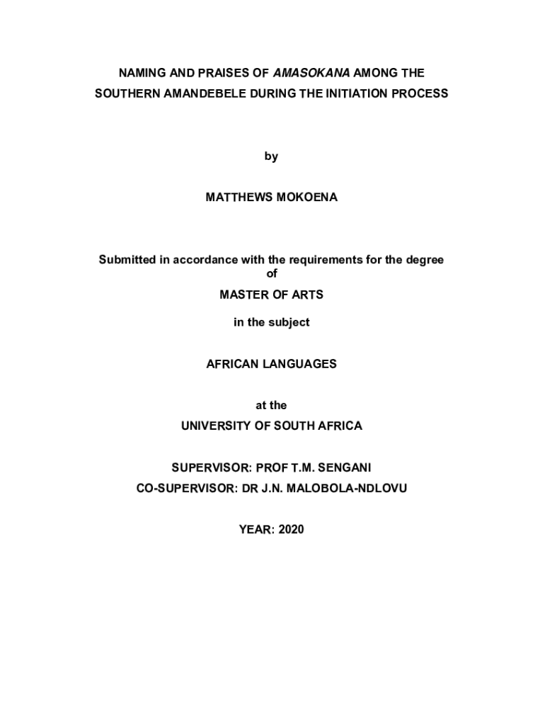 Get the free Naming and praises of Amasokana among the Southern ... - uir unisa ac