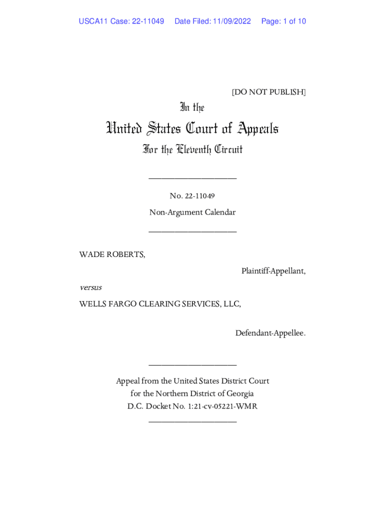 Get the free Wade Roberts v. Wells Fargo Clearing Services, LLC