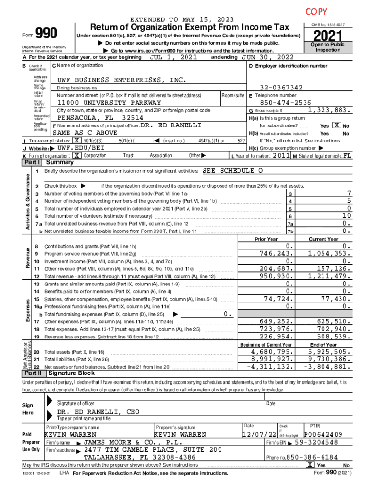Form990Return of Organization Exempt From Income Tax OMB No. 15450047| Do not enter social security numbers on this form as it may be made public. Open to Public
