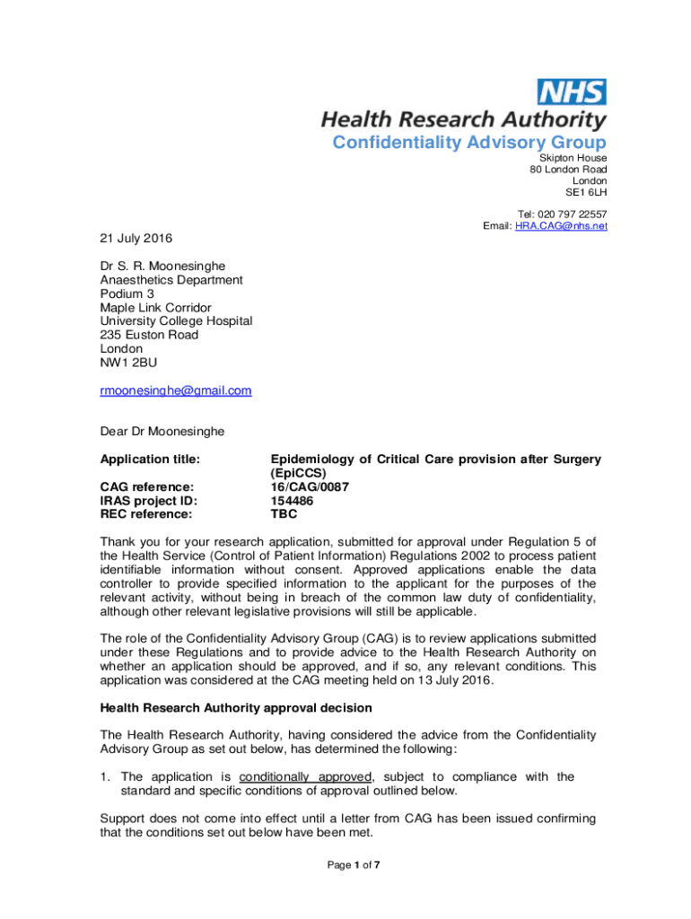 Get the free NHS Digital Advice request (2) to the HRA Confidentiality ...