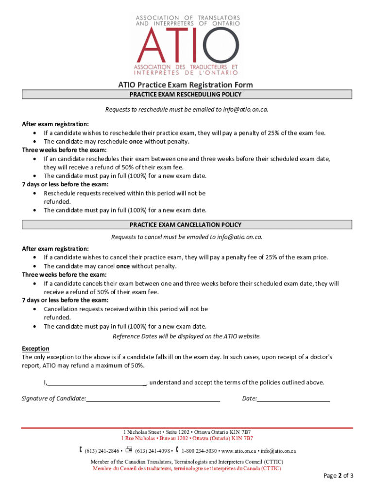 Get the free Translation Practice Exam Please complete the form and ... - atio on