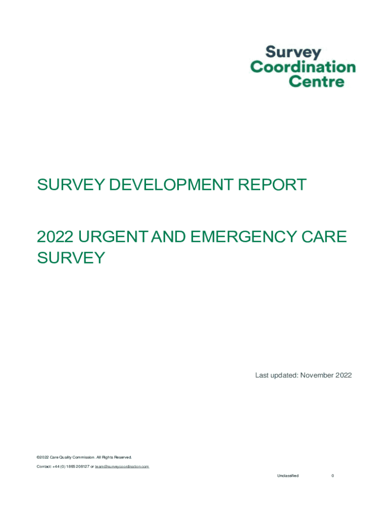 SURVEY DEVELOPMENT REPORT 2022 URGENT AND EMERGENCY CARE Surveys updated: November 20222022 Care Quality Commission. All Rights Reserved. Contact: +44 (0) 1865 208127 or team@surveycoordination.com