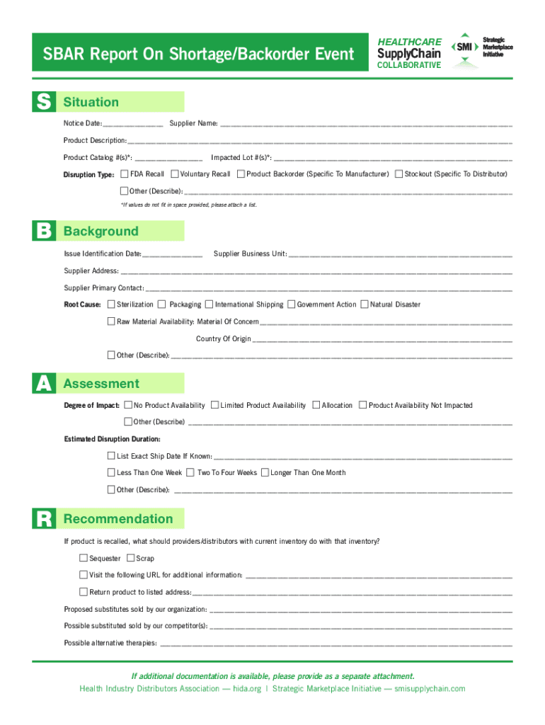 Get the free SBAR Report On Shortage/Backorder Event Form