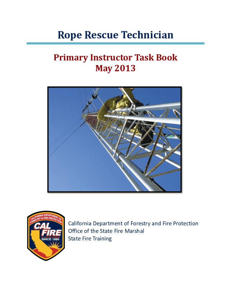 Rope Rescue Technician Primary Instructor Task Book May 2013California Department of Forestry and Fire Protection Office of the State Fire Marshal State Fire TrainingRope Rescue Technician Primary