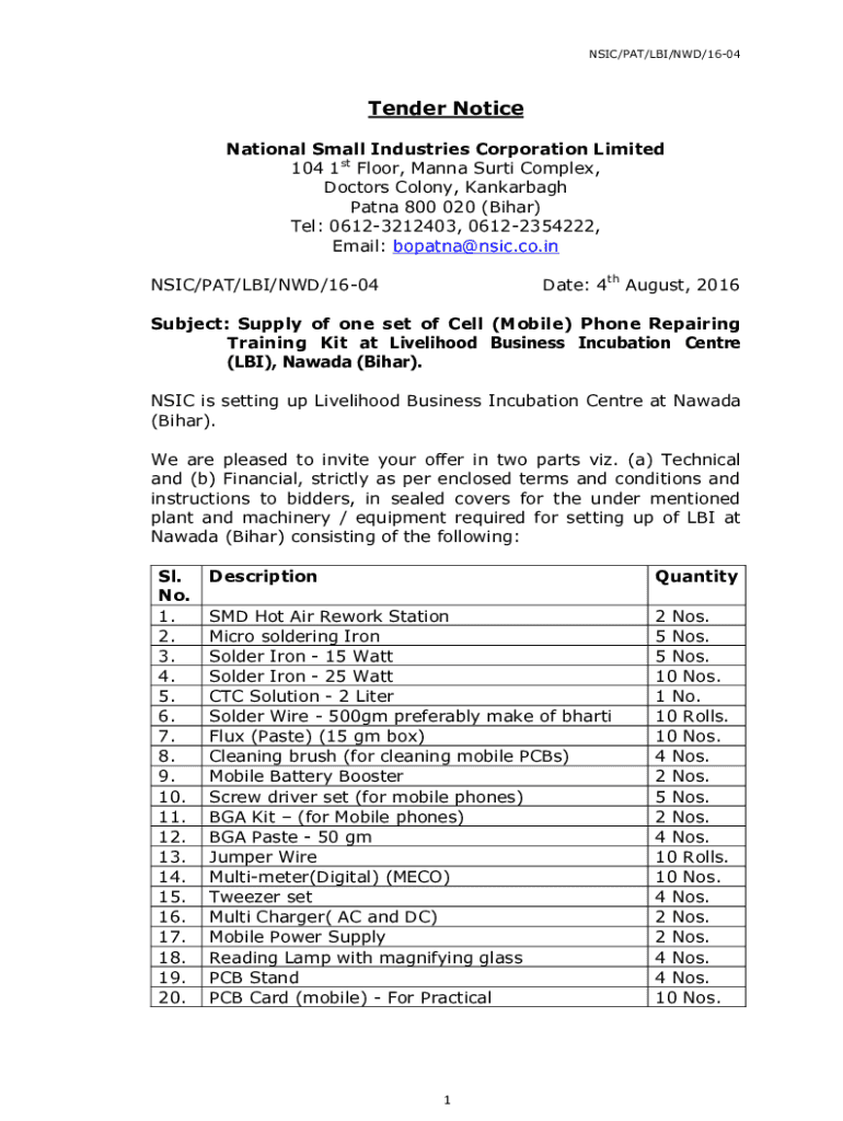 Get the free Tender Notice National Small Industries Corporation ...