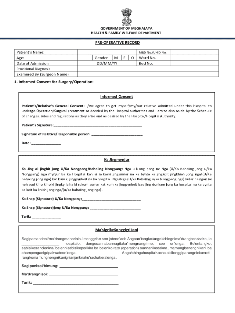 How to fill out pre-operative record - meghealth
