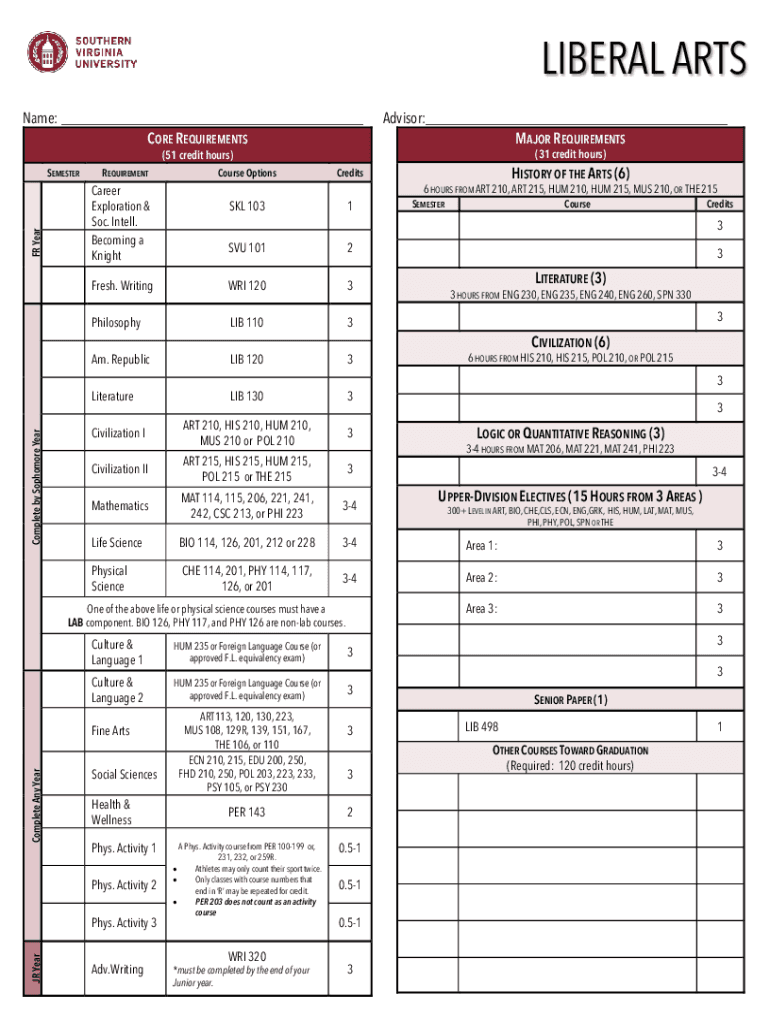 Students who are pursuing a liberal arts associate program are required to fill out program liberal arts associate.