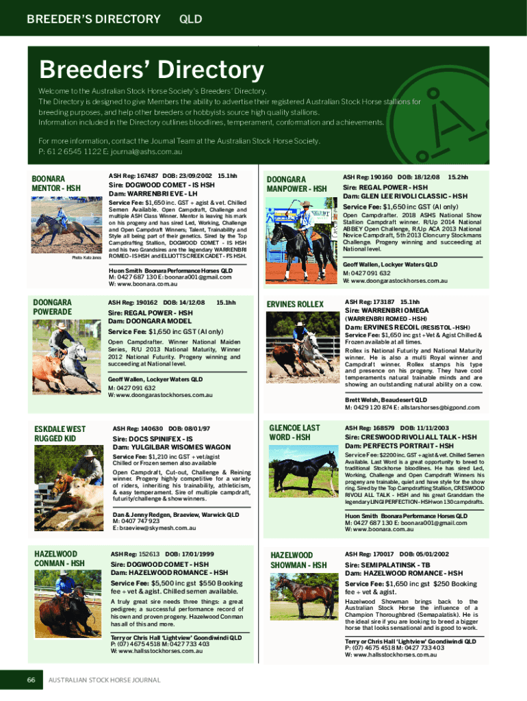 Get the free Breeders' Directory - Australian Stock HorseOnly $50 to ...