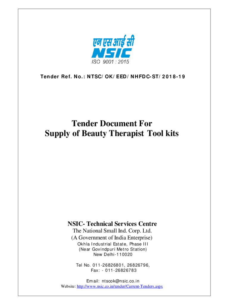 Tender Ref. No.: NTSC/OK/EED/HADST/201819Tender Document For