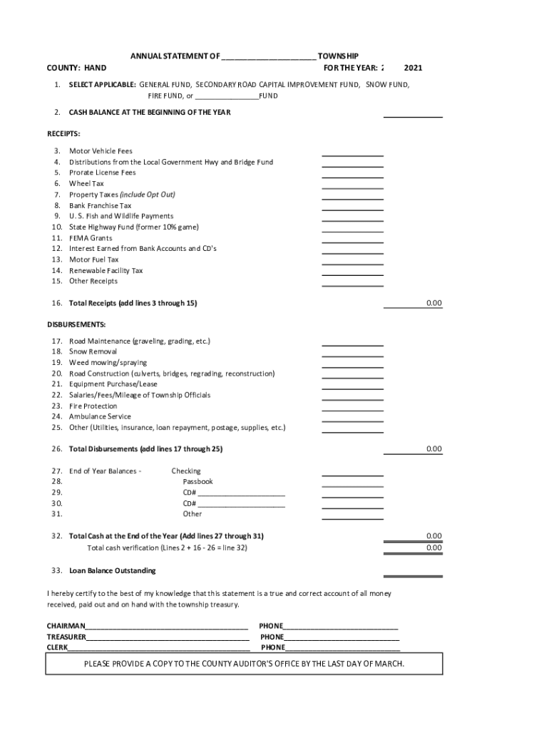 Get the free annual statement of township ... - hand sdcounties