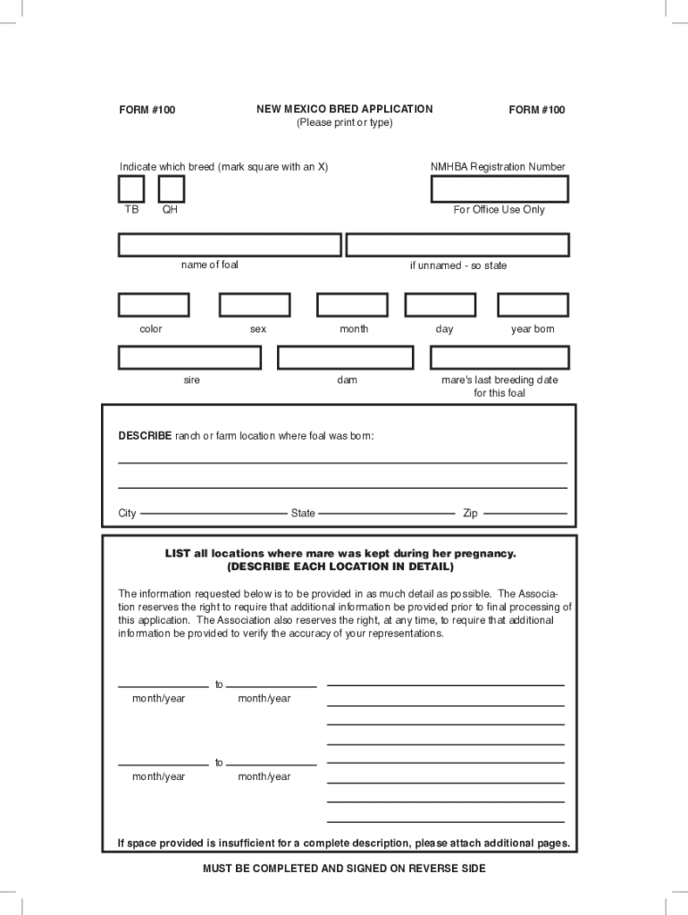 The new mexico bred application is a form used by horse owners to register their horse as a New Mexico bred.