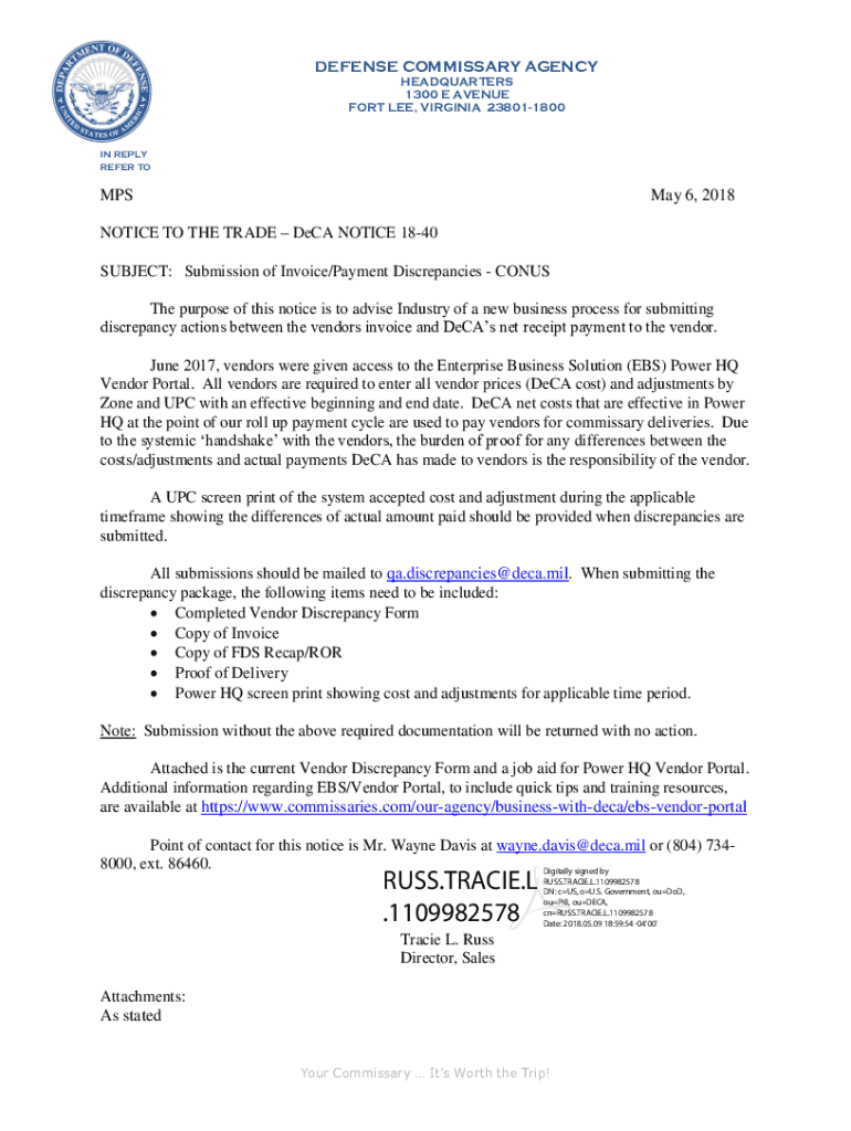 SUBJECT: Submission of Invoice/Payment Discrepancies
