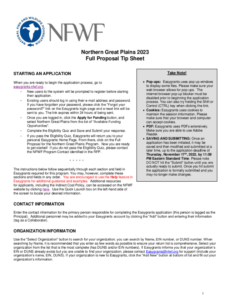 Northern Great Plains 2023 Full Proposal Tip Sheet STARTING AN APPLICATION When you are ready to begin the application process, go to easy grants.NFF.org. New users to the system will be prompted