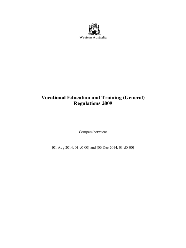 Western AustraliaVocational Education and Training (General) Regulations 2009Compare between:[01 Aug 2014, 01c000] and [06 Dec 2014, 01d000]Western AustraliaVocational Education and Training Act 1996Vocational