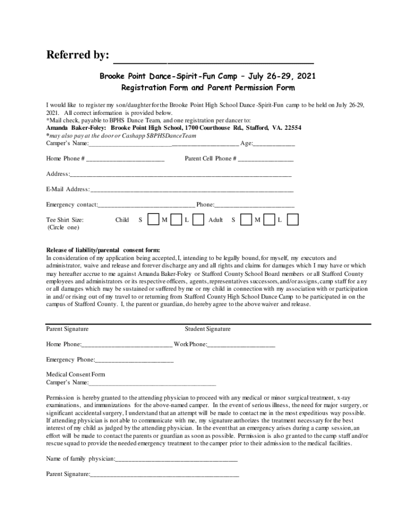 Fill out your brooke point dancespiritfun camp online with pdfFiller!