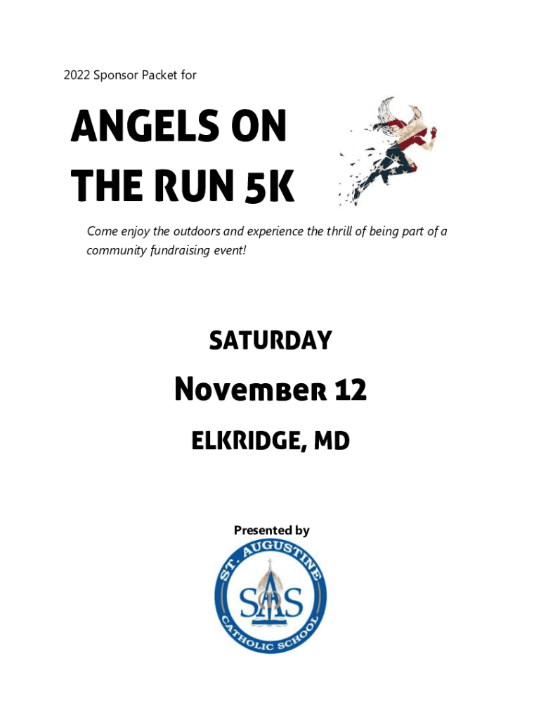 2022 Sponsor Packet oranges ON THE RUN 5K Come enjoy the outdoors and experience the thrill of being part of a community fundraising event!SATURDAYNovember 12 ELDRIDGE, MDP resented angels ON THE