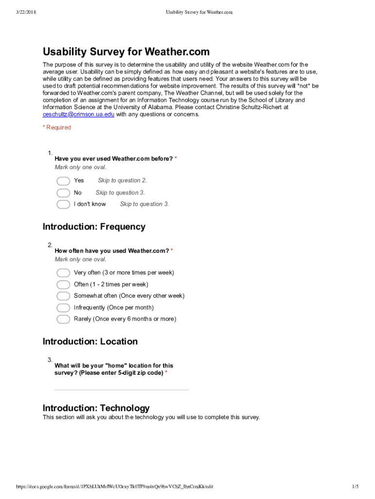 Get the free Usability Survey for Weather.com - Google Forms