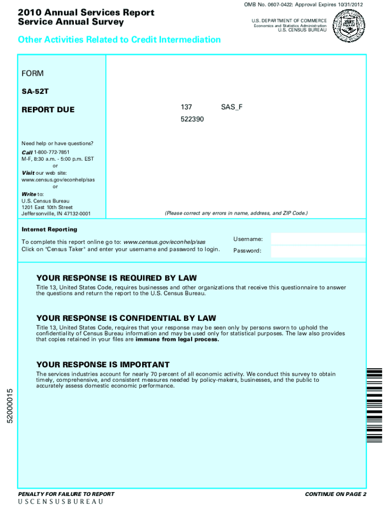OMB No. 06070422: Approval Expires 10/31/20122010 Annual Services Report Service Annual Survey. S. DEPARTMENT OF COMMERCEEconomics and Statistics Administration. S. CENSUS Breather Activities Related