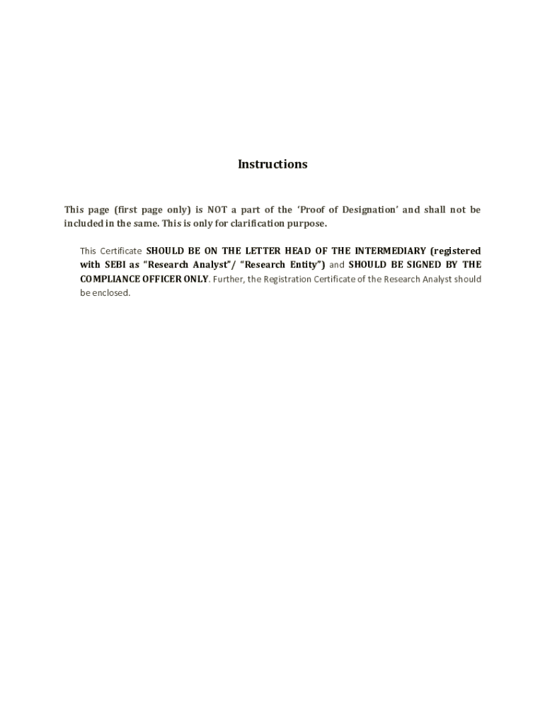 InstructionsThis page (first page only) is NOT a part of the Proof of Designation and shall not be included in the same. This is only for clarification purpose. This Certificate SHOULD BE ON THE LETTER