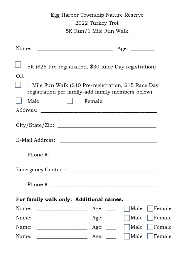 Get the free Register For EHT Nature Reserve Turkey Trot 5k & 1 Miler