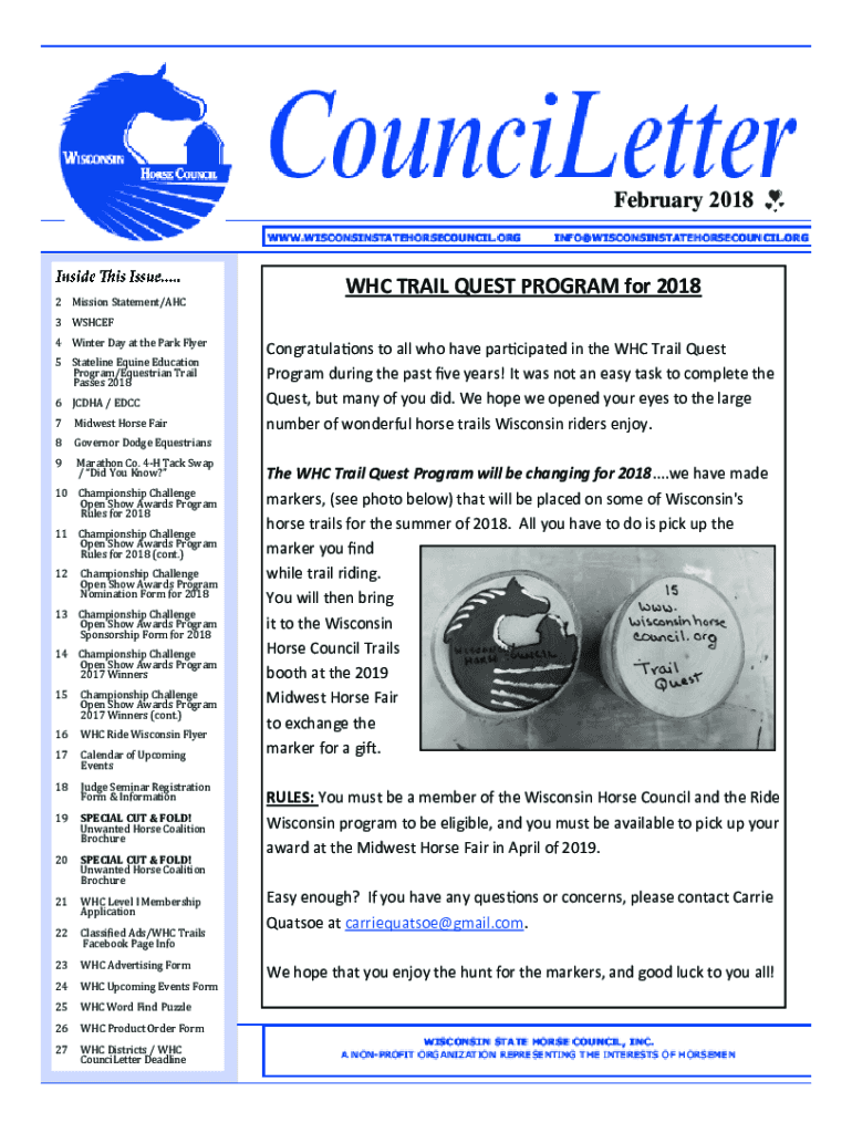 February 20182 Mission Statement/AHC 3 WSHCEF4 Winter Day at the Park Flyer 5 State line Equine Education Program/Equestrian Trail Passes 2018 6 JC DHA / DCC 7Midwest Horse Fair9Marathon Co. 4H Tack