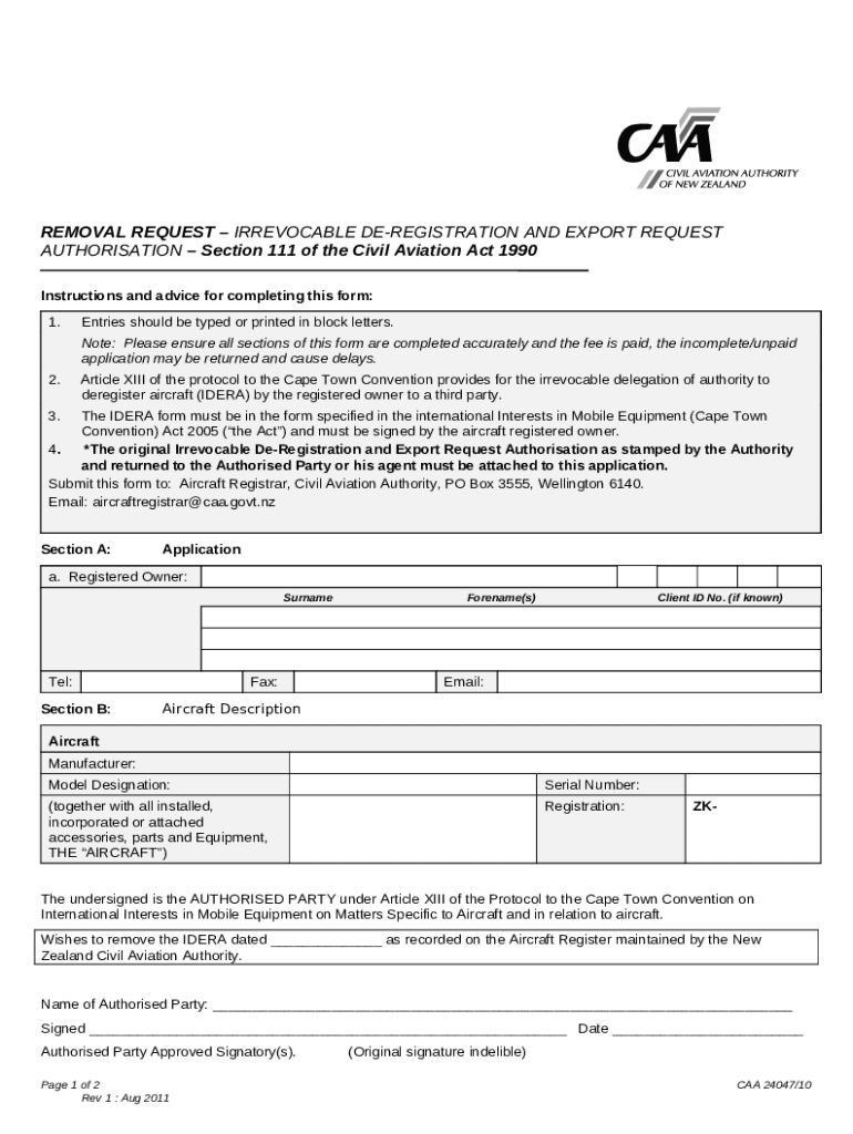 Irrevocable de-registration and export request authorization template instructions