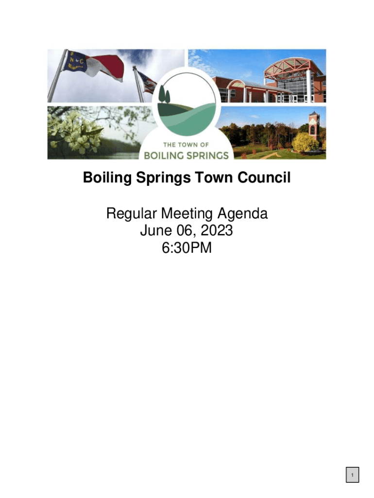 Boiling Springs Town Council Regular Meeting Agenda June 06, 2023 6:30PM1Town of Boiling Springs PO Box 1014 | Boiling Springs, NC 28017 Phone 7044342357 | Fax 7044342358 www.BoilingSpringsNC.netTOWN