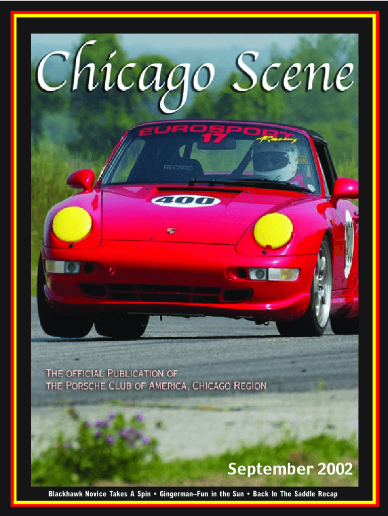 September 2002 Black hawk Novice Takes A Spin GingermanFun in the Sun Back In The Saddle Recap Chicago Scene The Official Publication of the Porsche Club of America Chicago Region I n s i d ET h i