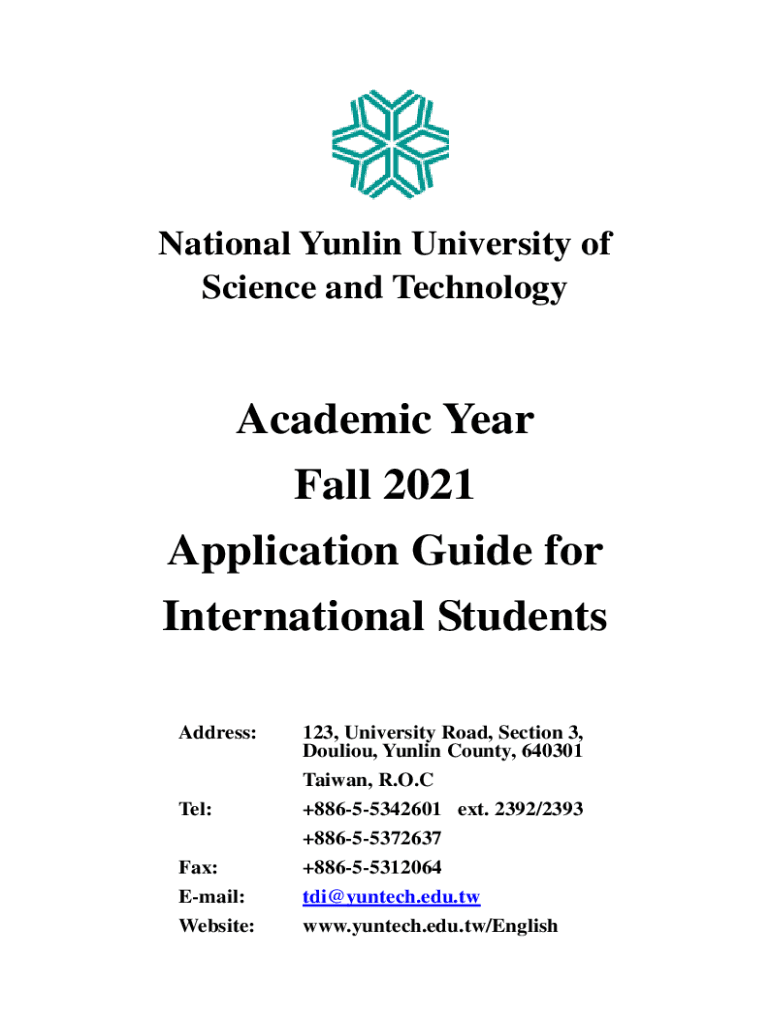 National Dublin University of Science and TechnologyAcademic Year Fall 2021 Application Guide for International Students Address:123, University Road, Section 3, Doubling, Dublin County, 640301 Taiwan,