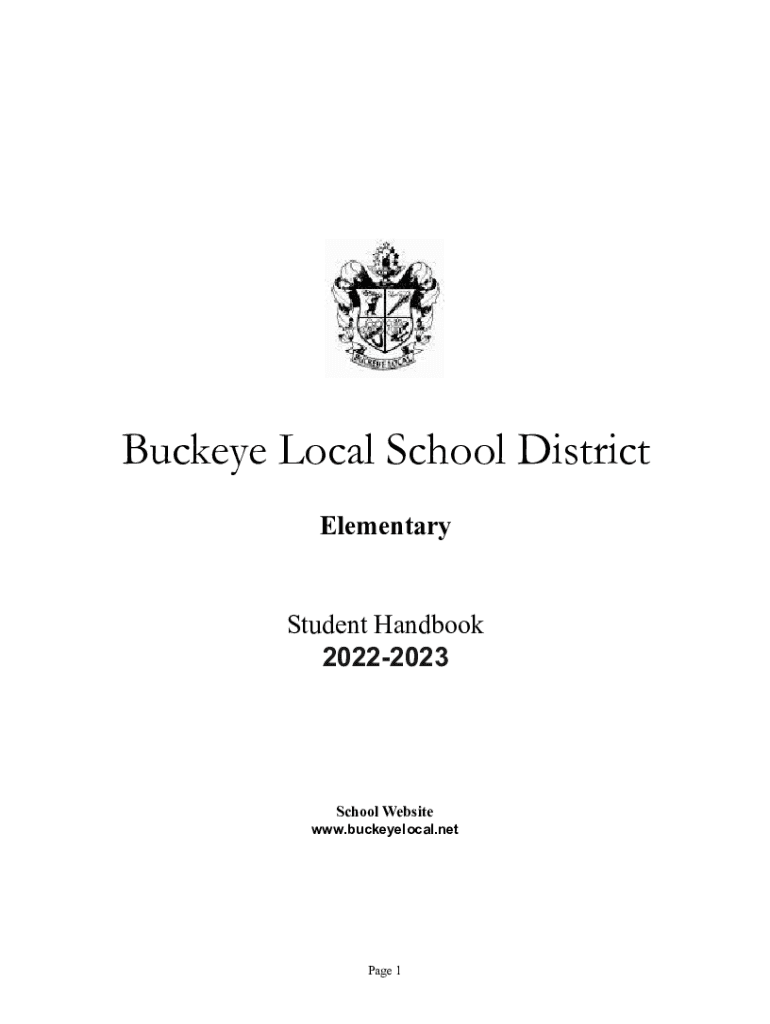 Buckeye Local School District ElementaryStudent Handbook 20222023School Website www.buckeyelocal.netPage 1The information in this handbook is important. Please read each page carefully and follow
