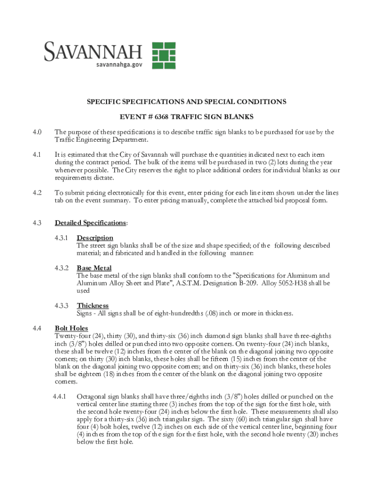 SPECIFIC SPECIFICATIONS AND SPECIAL CONDITIONS EVENT # 6368 TRAFFIC SIGN BLANKS 4.0The purpose of these specifications is to describe traffic sign blanks to be purchased for use by the Traffic Engineering